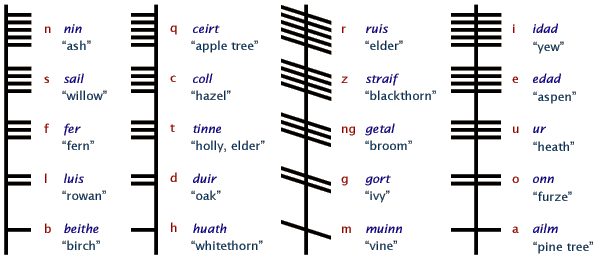 Pretpostavlja se da su se Rune razvile iz pisma starih Kelta i Druida Ogham Bethluisnion. To je jednostavno pismo koje se urezivalo u kamen ili drvo i služilo je prvenstveno za pisanje i razmjenu informacija. Ono što je za ovo pismo specifično je njegovo pisanje počevši sa dna kamena ili drva prema gore i činjenica da su najstariji tekstovi pronađeni isključivo na prostorima Irske, Walesa i Škotske. Procjenjuje se da potječu iz trećeg do šestog stoljeća nove ere. Također jedna od zanimljivosti je grupacija slova, zadnja grupa sadrži samo samoglasnike, a poredani su po njihovom položaju u ustima, odnosno po tome koje samoglasnike smatramo prednjim, zadnjim, a koji središnjim.